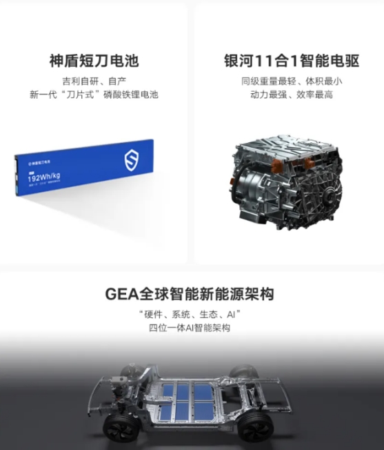 吉利新一代全球智能新能源架構(gòu)——GEA架構(gòu),耗資百億元打造,集“硬件、系統(tǒng)、生態(tài)、AI”四位一體,致力于為用戶打造兼具“全域安全、AI智能、百變能源、品質(zhì)駕控、靈活空間”的模塊化架構(gòu)解決方案。吉利銀河E5作為首款基于GEA架構(gòu)打造的量產(chǎn)車,已于8月3日上市。[3]