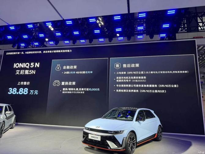 在2024成都車展期間,來自現(xiàn)代的高性能純電動車IONIQ 5 N正式上市,這款最大功率650馬力,0-100km/h加速3.4秒,CLTC續(xù)航里程556km的新車售價為38.88萬元。