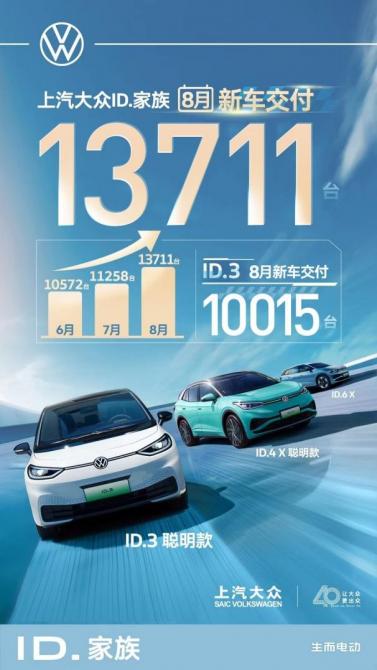 此次煥新升級,上汽大眾ID.家族不僅展現(xiàn)了品牌在新能源領(lǐng)域的深厚實(shí)力與前瞻視野,更以空前的誠意與優(yōu)惠力度為消費(fèi)者帶來了性價比與智能體驗(yàn)并重的全新出行選擇,盡顯品牌強(qiáng)大的創(chuàng)新力和市場競爭力。8月,上汽大眾ID.家族單月新車交付量達(dá)到了13,711輛,實(shí)現(xiàn)了連續(xù)多月的穩(wěn)步增長,穩(wěn)居合資純電銷冠的寶座。其中,ID3 聰明款單月新車交付量更是高達(dá)10,015輛。2024成都車展已開幕,對ID3 聰明款感興趣的消費(fèi)者,不妨約上朋友、家人一同打卡上汽大眾展臺,還有酒心月餅盲盒免費(fèi)派發(fā)。