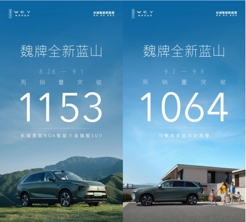 在上市后的兩周內(nèi),魏牌全新藍山在25-40萬級六/七座SUV周銷量排行榜上連續(xù)上榜,分別取得1153輛、1064輛的亮眼周銷成績單,這不僅將全新藍山的市場熱度推向了一個新的高峰,更進一步鞏固了其在高端智能大六座SUV細(xì)分市場的領(lǐng)導(dǎo)地位。