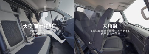 除了給奮斗者打造兩款能裝能跑的創(chuàng)富性能產(chǎn)品,江鈴汽車更將“以人為本”的造車?yán)砟盥鋵?shí)在每一個(gè)產(chǎn)品細(xì)節(jié)上。首先是以安全可靠,E福順車身高強(qiáng)鋼占比最高達(dá)77%,同級(jí)別領(lǐng)先。搭載行業(yè)首發(fā)電子液壓制動(dòng)EHB,在80公里時(shí)速下,制動(dòng)距離縮短3米,關(guān)鍵時(shí)刻能化險(xiǎn)為夷。其次座艙空間大,1米88大高個(gè)坐進(jìn)去頭和膝蓋都有空間。E福順還可選配雙人副駕,可在等單和充電時(shí)躺著休息更舒服。E順達(dá)單人副駕躺臥角度可達(dá)36°,媲美高鐵一等座。