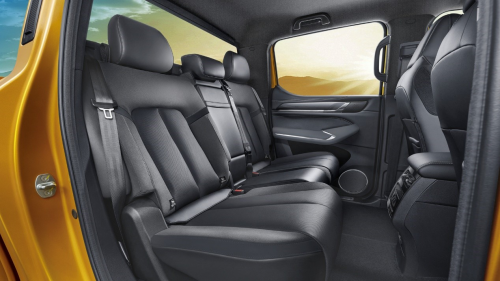 山海炮Hi4-T創(chuàng)新雙后圍設計,配合迷宮式出氣口、隱藏式后門縫、車箱與車身間的全密封設計以及尾翼導流等技術,NVH表現(xiàn)遙遙領先,打造深海級靜謐空間;車型首創(chuàng)后排座椅電動調節(jié),最大乘坐靠背角達33度,相對傳統(tǒng)皮卡25度靠背角度,舒適度大幅提升,配合1.6m超寬肘部空間,后排舒適度可比肩豪華越野車,真正實現(xiàn)舒適度平權。