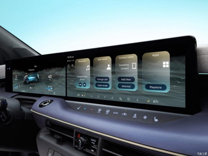 來到車內(nèi),新車以黑白配色為主,并通過紫色進(jìn)行點(diǎn)綴,展現(xiàn)出不錯(cuò)的時(shí)尚感。車內(nèi)十分簡潔,配備雙幅式方向盤以及雙14.3英寸連屏設(shè)計(jì),屏幕內(nèi)置導(dǎo)航、多媒體娛樂系統(tǒng)以及應(yīng)用商店等等,并支持遠(yuǎn)程控制。另外我們還能夠看到其將會(huì)提供帶頭枕揚(yáng)聲器的BOSE品牌音響,按鍵式換擋機(jī)構(gòu)、HUD抬頭顯示、電阻變色的大尺寸天窗以及前排手機(jī)無線充電等等。