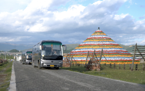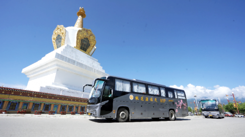 2025年7月,趕在暑期游高峰到來之前,20臺(tái)海格V11 2+1陸地頭等艙車型陸續(xù)抵達(dá)香格里拉,開始承擔(dān)游客接待任務(wù)。
