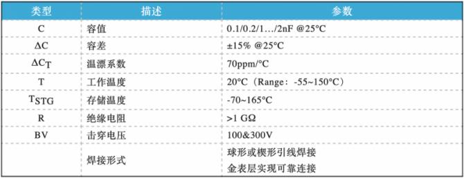 SW-MIM硅電容采用平面薄膜沉積和圖形化工藝,薄膜工藝使其具有高精度和良好的頻率特性,具有高精度,小體積,低溫漂系數(shù),高穩(wěn)定性等優(yōu)勢。