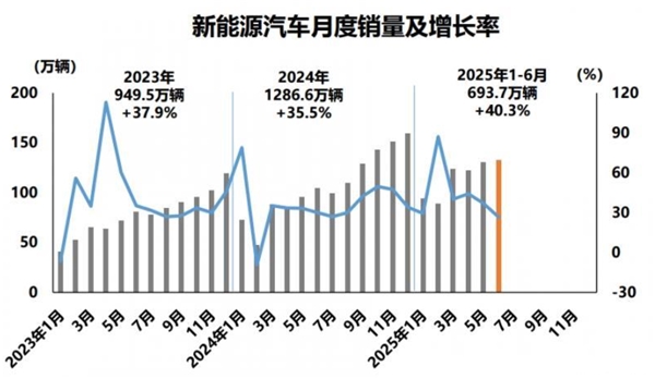 今年以來(lái),新能源汽車(chē)市場(chǎng)持續(xù)升溫。中國(guó)汽車(chē)工業(yè)協(xié)會(huì)數(shù)據(jù)顯示,2025年上半年,國(guó)內(nèi)新能源汽車(chē)銷(xiāo)量達(dá)到693.7萬(wàn)輛,同比增長(zhǎng)40.3%,市場(chǎng)滲透率近45%,標(biāo)志著新能源汽車(chē)進(jìn)入規(guī)?;占半A段。