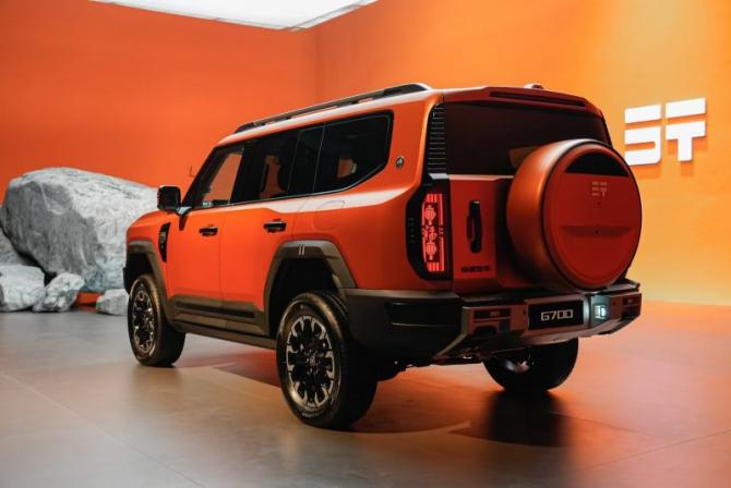 來到車身側(cè)面,縱橫G700的D柱設(shè)計(jì)靈感源自喜馬拉雅北坡冰壁與陡崖的形態(tài),鋒銳折角盡顯車體硬朗,曲面過渡暗藏精致藝術(shù)。這種設(shè)計(jì)不僅讓整車看起來更加動(dòng)感,更在交錯(cuò)間展現(xiàn)出一種獨(dú)特的韻律感。車尾的設(shè)計(jì)則汲取了喜馬拉雅雄偉輪廓的靈感,仿若雪域堡壘般挺闊有型,盡顯硬朗。搭配原廠原裝全包覆式備胎罩,野性與精致并存,讓人一眼就能感受到這款車的不凡氣質(zhì)。