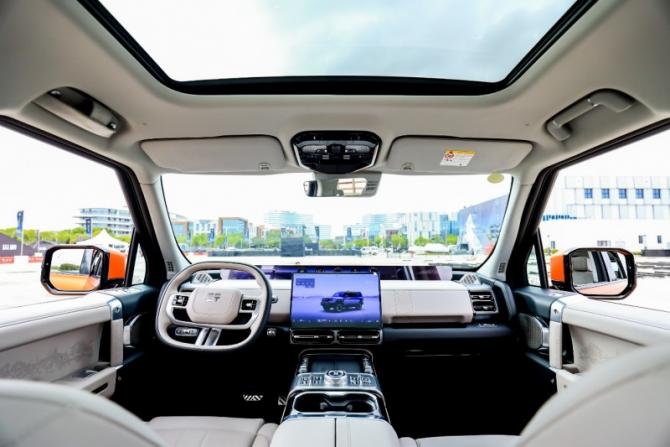縱橫G700打破“越野必粗糙”的刻板印象,將硬派越野的實(shí)用性與豪華座艙的舒適性完美融合,儀表臺(tái)采用真皮壓印工藝,搭配珠峰8848等高線紋理,細(xì)節(jié)彰顯卓越品質(zhì)。