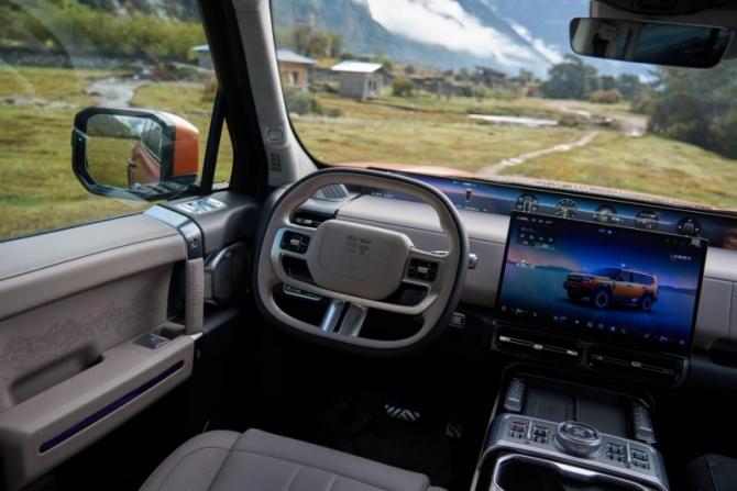 在內飾設計上,縱橫G700采用東方美學的設計,以喜馬拉雅山脈為靈感,珠峰8848等高線紋理與圖騰徽章貫穿座艙。座椅方面G700臻選Nappa真皮座椅,精選3-5歲黃牛頭層真皮,經(jīng)14層堆疊工藝處理,全方位承托身體舒緩。主副駕座椅支持8點按摩和3檔通風/加熱功能,前排靠背最大可至164°仰平,為用戶提供極致的舒適體驗。二排右側座椅聯(lián)動副駕折疊后可形成“女王座椅”,并可秒變“大床房”模式,讓用戶在越野途中輕松躺平,享受旅途的從容愜意。
