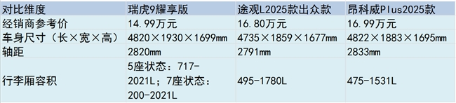 在15萬左右的油車領域,價格與空間是消費者首要考量的因素,而瑞虎9耀享版在這兩大維度均展現(xiàn)出顯著優(yōu)勢。從價格層面來看,瑞虎9耀享版經(jīng)銷商參考價僅為14.99萬元,相比途觀L 2025款出眾款330TSI 自動兩驅R-Line龍耀版的16.80萬元低1.81萬元,較昂科威Plus 2025款28T兩驅白金版的16.99萬元更是低2萬元,在價格敏感度較高的細分市場中,這一價格差距足以成為消費者選擇的關鍵因素。