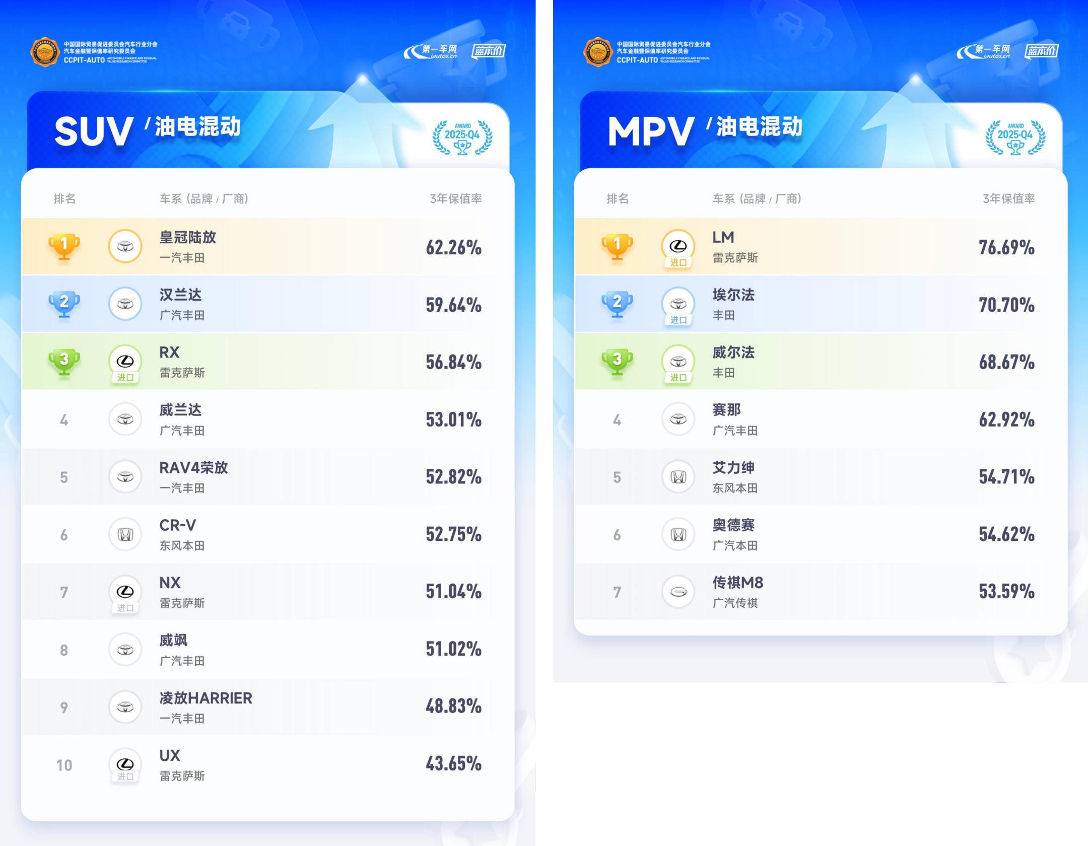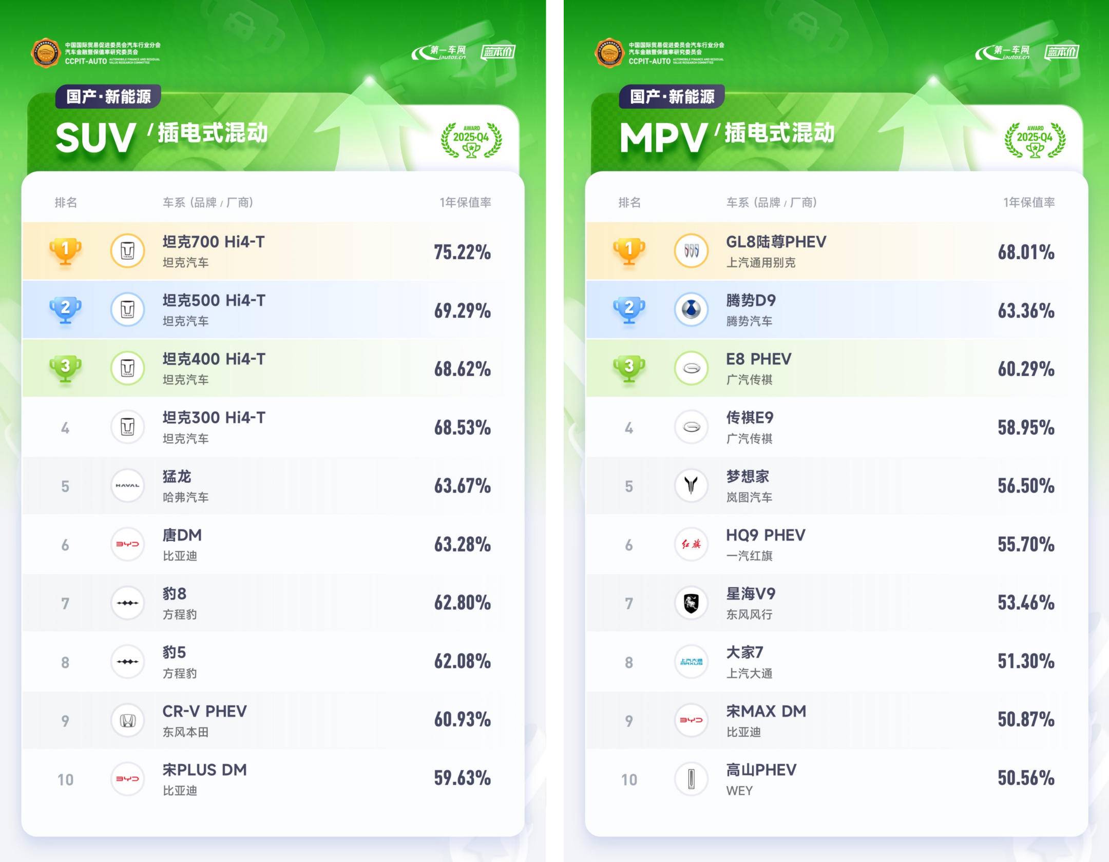 《2026 中國汽車保值率排行榜》部分榜單如下: