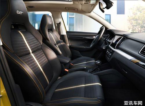 而柯米克GT的內(nèi)飾卻與大眾不同??旅卓薌T的潮酷內(nèi)飾以黑色為主,搭配著與車身同樣的裝飾帶和GT專屬潮感撞色內(nèi)飾條,有著獨(dú)特的運(yùn)動(dòng)感和活力感,而且在細(xì)節(jié)上有著豐富的運(yùn)動(dòng)元素,換擋桿、副駕右前方增加了“GT”標(biāo)識,看上去更有質(zhì)感,也帶來了更強(qiáng)的駕駛欲望和儀式感?!肮δ軑u”圍繞駕駛者布局,功能按鍵排布美觀、合理,同時(shí)也拓寬了視覺比例,提升空間感。